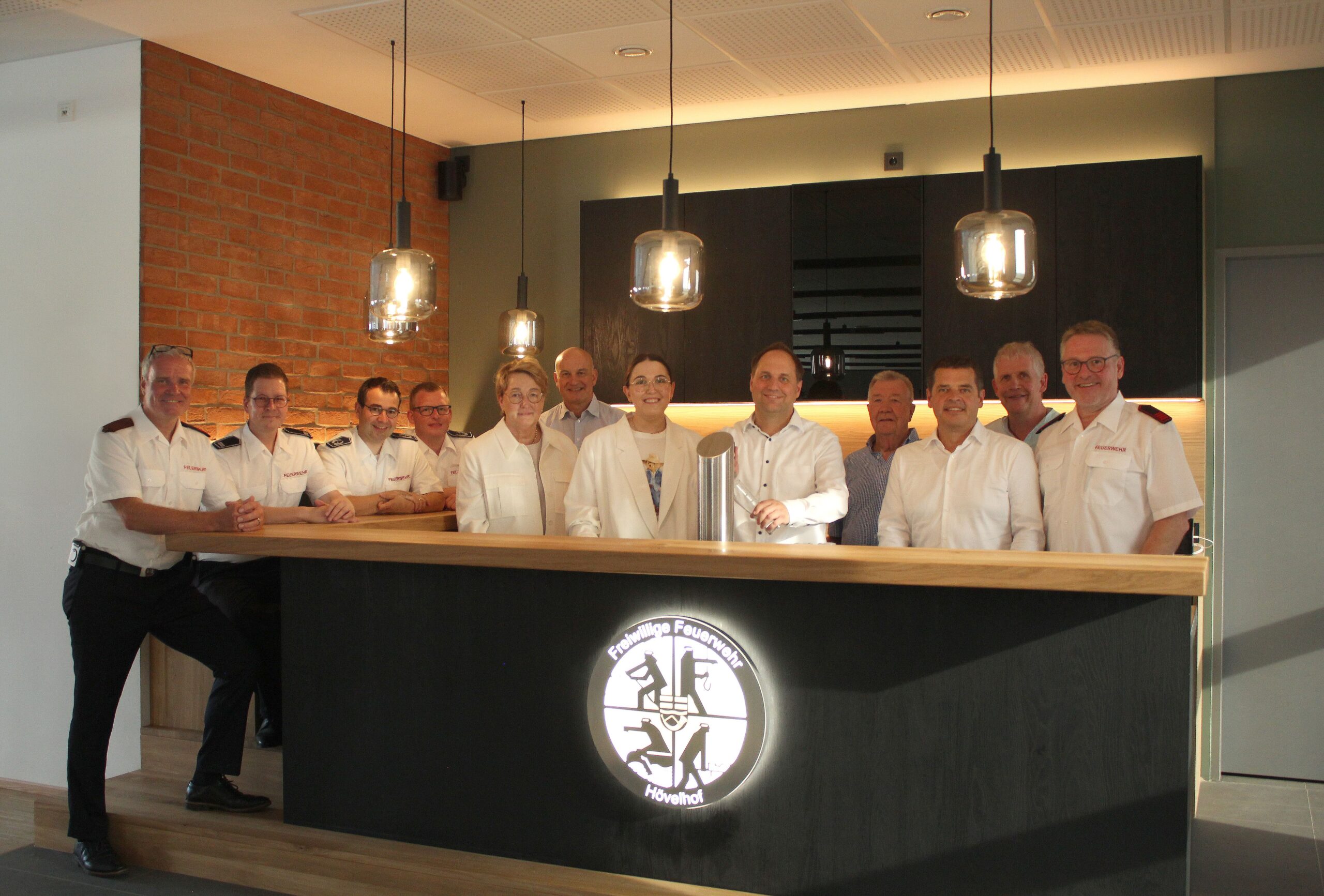 Ein Hingucker und zugleich funktioneller Bestandteil des Schulungsraums im neuen Feuerwehrgerätehaus der Sennegemeinde Hövelhof, das kürzlich eingeweiht wurde, ist die Versorgungsstation mit integrierter Küchenzeile, einer Thekeneinrichtung, einem Coffee-Point und einer angrenzenden Kühlzelle. Die Gestaltung greift auf naturnahe und nachhaltige Baustoffe wie Holz zurück und fügte sich harmonisch in die Gesamtplanung ein.